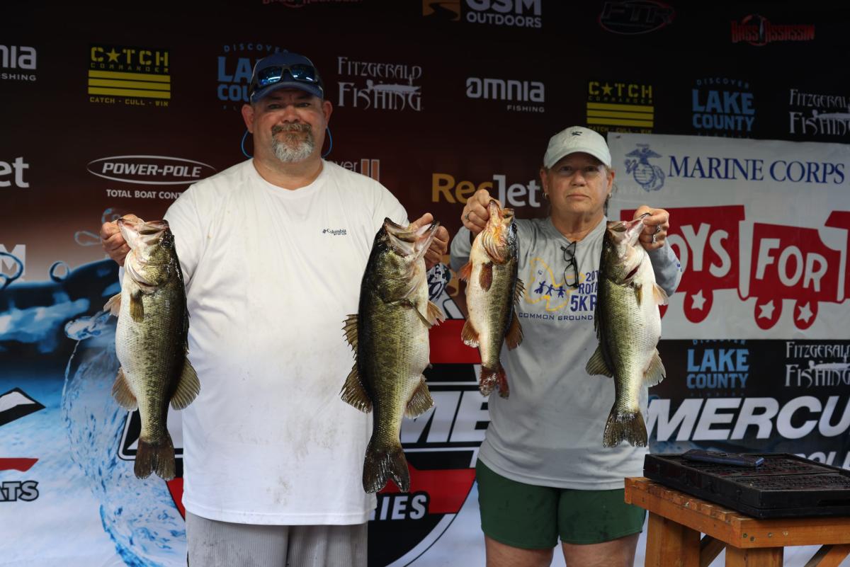 The tournament saw a record number of teams participate in the 10th annual event. The team of John Stahl, Scott Stahl, Ben Harris, and Sharon Harris topped the 50 boat field with a collective 44.80 pound, 10 bass limit to take home the $2,500.00 first place prize. Stahl and Stahl weighed the day’s heaviest 5 bass limit with 23.83 pounds. Harris and Harris followed up with another 20.97 pound, 5 bass limit to secure the win.